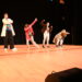 Lexi's and Olivia's dress shoes. Olivia is wearing low, white heels and Lexi wearing brown, heeled ankle boots.